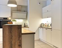 Współczesna kuchnia to miejsce otwarte, urządzone z dużą starannością, zadbane, ozdobione roślinami i ciekawymi tkaninami, a przy tym wyposażone w supernowoczesny sprzęt, który jest bardzo praktyczny i ułatwia wykonywanie codziennych czynności. Dlatego chętnie pokazujemy to pomieszczenie, jest ono często naszą dumą. To właśnie w kuchni spotykamy się z rodziną lub przyjaciółmi spędzając miła czas przy kawie. Coraz częściej kuchnie łączy się z pokojem dziennym, dzięki czemu staje się ona wizytówką naszego mieszkania. Starannie dobieramy meble ich kolorystyki oraz materiał z którego są wykonane. Nie należy jednak skupiać się na tylko walorach estetycznych kuchni. Podczas jej urządzania należy Również zwrócić uwagę na jej funkcjonalność, sposób organizacji przestrzeni i optymalne wykorzystanie każdego cm. Warto przeanalizować poszczególne etapy pracy i rozplanować rozkład mebli w taki sposób, aby odległości między nimi nie były zbyt duże, dzięki czemu codzienne pracę zajmą mniej czasu. Przedmioty czy produkty powinny znajdować się blisko tych miejsc, gdzie mają być używane np. garnki i patelnie należy ułożyć blisko kuchenki natomiast detergenty blisko zlewozmywaka coraz częściej szafki dolne zastępowane są przez szuflady z pełnym wysuwem o różnych szerokościach i głębokościach. Takie rozwiązanie umożliwia dokładne wykorzystanie miejsc trudni dostępnych. Nie musimy już sięgać na kolanach po potrzebne produkty, które znajdują się w tylnej części szafki. Nawet maksymalnie obciążone szuflady przesuwają się płynnie a systemy domykania zapobiegają głośnemu uderzeniu frontu o szafkę. Dostępne na rynku różnego rodzaju systemy organizacji wewnętrznej szuflad pozwalają na dostosowanie ich do indywidualnych potrzeb użytkownika i pomagają w utrzymaniu porządku. Idealnym miejscem do przechowywania żywności są wysokie szafki tupu cargo oraz szuflady z wysokim frontem. Szafki cargo można w całości wysunąć przed korpus dzięki czemu jest dobry dostęp do przechowywanie produktów. Natomiast szuflada z wysokim frontem wyposażona w relingi oraz elementy dzielące utrzymuje we właściwej pozycji znajdujące się tam produkty. Specjalny wkład ze słoikami to doskonałe rozwiązanie, umożliwiające przechowywanie sypkich produktów żywnościowych. Dzięki temu nie musimy obawiać się że drobinki cukru czym mąki zabrudzą szufladę. Podczas projektowania kuchni należy pamiętać również o jej odpowiednim oświetleniu, które w zależności od sytuacji zapewni właściwe warunki do pracy lub stworzy miły i przyjemny nastrój. Zastosowanie oświetlenia pod szafkami wiszącymi gwarantuje wysoką wydajność świetlną i nie powoduje oślepienia osoby pracującej w kuchni jeśli chcielibyśmy wprowadzić subtelne akcenty świetlne, które pozwolą na wyeksponowanie dekoracyjnych elementów wnętrza, wówczas idealnie sprawdzają się coraz popularniejsze kolorowe lampki LED, które nastrojowo podświetlą np. szklane tafle półek. Planując meble kuchenne do naszego pomieszczenia należy zwrócić uwagę na dobór sprzętu AGD. Przed zakupem urządzeń należy zwrócić uwagę na etykietę z przydatnymi informacjami. Jednym z najważniejszych parametrów jest klasa efektywności energetycznej. Wybierając pralkę czy zmywarkę należy zdecydować się na modele klasy A a nawet A+, A++ urządzenia klasy B i C nie są dla tych którzy liczą się z kosztami związanymi z utrzymaniem domu większy wydatek za urządzenia energooszczędne rekompensuje się w trakcie ich użytkowania. W przypadku takich modeli mniejsza jest również emisja gazów do atmosfery. Kupując sprzęt chłodniczy należy zdecydować się chłodziarko-zamrazarkę, będzie to podwójna korzyść dla naszego portfela, tego typu urządzenie kosztuje mniej niż dwa oddzielne. Na pewno przydatne okażą się taki funkcje jak:”No Frost” (automatyczne usuwanie szronu co pozwala zaoszczędzić energię i wydłuża żywotność urządzenia). Natomiast w przypadku kuchenek najbardziej energooszczędna jest płyta indukcyjna która ok. 90% energii oddaje do naczynia, a to skraca czas przyrządzania posiłku. Podczas podgrzewanie pozostaje zimna, a dzięki wbudowanemu polu magnetycznemu ciepło pozostaje tam gdzie jest rzeczywiście potrzebne-na dnie garnka. Do gotowania na płycie potrzebne są naczynia z magnetyzującym dnem np. z emaliowanej stali, żeliwa lub stali szlachetnej. Kupując urządzenia do naszej kuchni pamiętajmy nie tylko o tym aby pasowały do aranżacji naszego mieszkania lecz także, by pobierały jak najmniej energii (te najbardziej ekonomiczne zużywają nawet do 50% mniej prądu) Oferujemy wiele kategorii mebli. Każde z nich charakteryzuje się odmiennymi cechami, które wynikają ze sposobu produkcji, użytych materiałów oraz ich przeznaczenia. Do wytwarzania mebli drewnianych wykorzystywane są tylko naturalne surowce ; drewno odpowiednio dobrane, wysokiej klasy okleiny. Dodatkowo na ich wysoką jakość składa się wiele innych elementów od markowych okuć, akcesoriów po bezwonne i dobrej jakości lakiery. Markowe okucia są mocne i wytrzymałe. Na każdym z nich można odczytać znaczek markowego producenta np. Blum. Firma Blum wprowadziła na rynek bardzo ciekawy i praktyczny elektroniczny system otwierania szuflad. System ten sprawdza się szczególnie w przypadkach szerokich i ciężkich modeli szuflad. Lekkie naciśniecie szuflady kolanem czy biodrem w dowolnym miejscu frontu powoduje jej ciche i równomierne wysunięcie. Szafy wnękowe